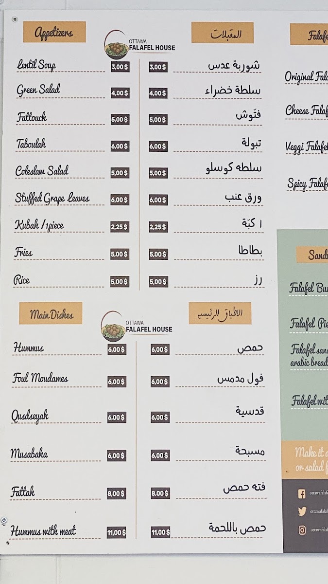 Ottawa Falafel House Menu